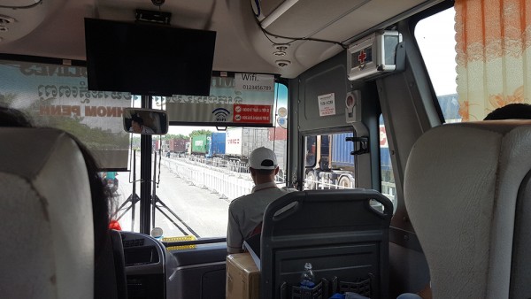 9시 30분 쯤 출발 하였습니다. (시내 몇곳을 더 들리며 사람들을 싣고 캄보디아 국경으로 가게 됩니다.)